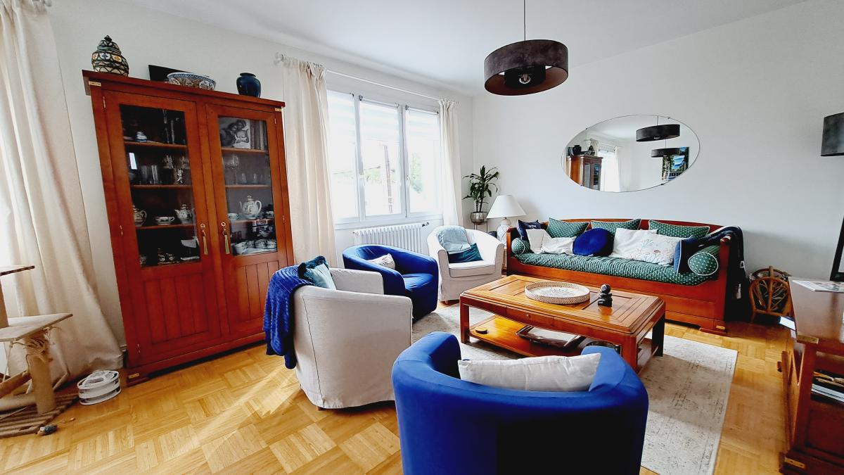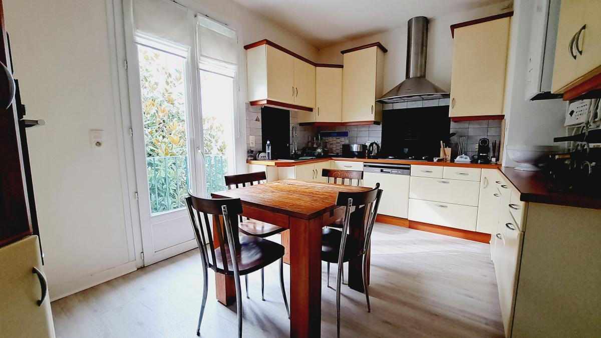 Cet appartement très bien entretenu d'une surface habitable appréciable de 134 m² est composé d'une entrée desservant un lumineux séjour-salon sur parquet exposé au Sud, d'une cuisine indépendante aménagée/équipée.