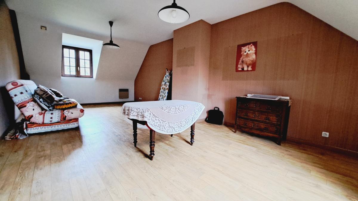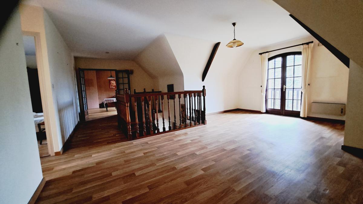 L'étage de cette maison dispose d'une grande mezzanine offrant un espace bureau ainsi que trois belles chambres , une salle de bains et wc séparés.