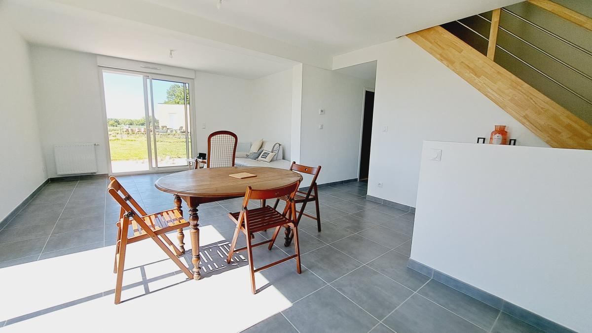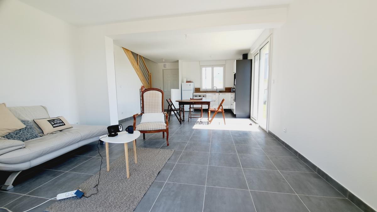 Cette maison très contemporaine et lumineuse exposée Sud/ouest d'une surface habitable de 108 m² environ est composée d'une entrée desservant une salle de séjour-salon avec cuisine ouverte aménagée /équipée , une chambre au rez-de-chaussée aménagée d'une salle de douche attenante , wc séparés .